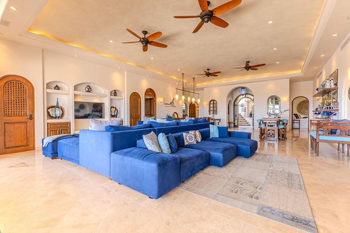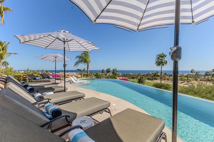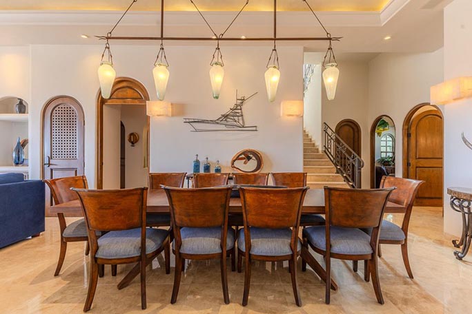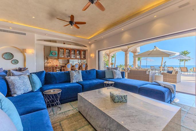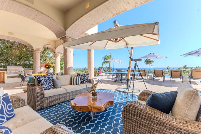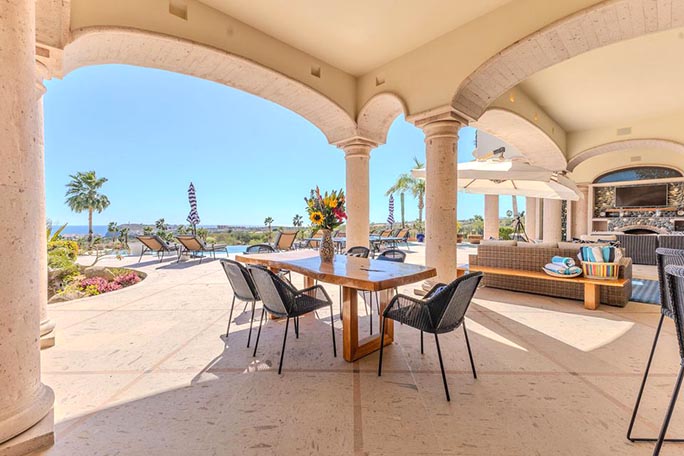 Welcome to Casa Alegria (''House of Happiness''), a rare gem in the sought-after community of Cabo del Sol. A golf cart away from the Anima Village shopping center with nine restaurants not including the Four Seasons restaurants and the Soho House. This exceptional two-story, fully furnished home offers luxurious living, seamlessly blending indoor comfort with breathtaking outdoor beauty. Perched in a prime location, the home boasts unparalleled 180-degree views. Watch the sunrise over the ocean and the sunset behind the mountains, all from the comfort of your own private retreat. Main Level - The Ultimate Retreat. Step into a world of elegance, where 12-foot-high ceilings and an open-concept design create an inviting space for family and friends. The grand living and dining areas flow effortlessly to the outdoors, embracing Cabo's signature indoor & outdoor lifestyle. Two generous sized bedrooms, ensuite and outdoor space. The second floor's soaring 14-foot ceilings make way for an entrainment lounge, three additional bedrooms and an attached casita with a generous kitchen and living area. With the amenities of pristine Desert Golf course and beautiful sandy beach, Casa Alegria has everything you dream of and more.