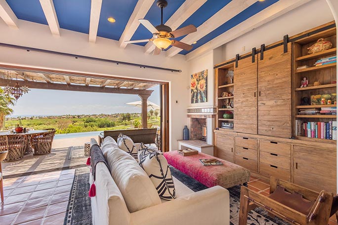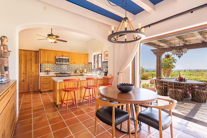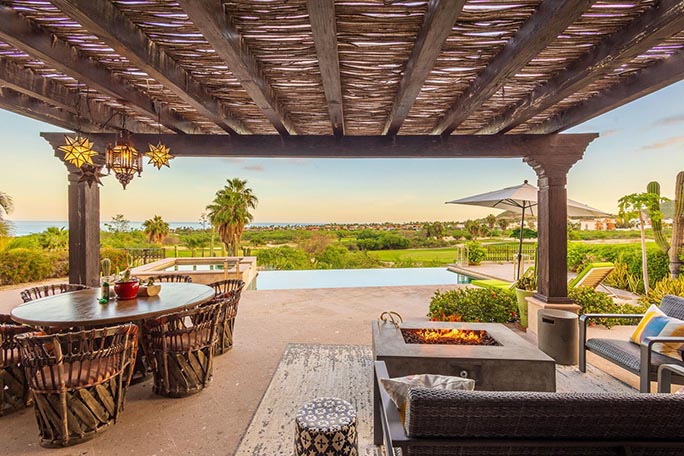 Custom-built home on two lots in the gated community of Club Campestre San José. Ocean view, featuring refined architecture and effortless Baja living. Tucked away on a quiet fairway-front location and surrounded by lush, mature landscaping, offering unmatched privacy, serenity, and outdoor living. Consisting of a main house and a detached 1BR casita, ideal for guests, multigenerational living, or rental income. The main home features: A luxurious master suite with private outdoor 'grotto and handcrafted granite soaking tub, chef's kitchen with quartz and marble countertops, custom cabinetry, and a walk-in pantry, beamed ceilings and handcrafted furnishings throughout. Outdoor amenities include an expansive poolside patio and BBQ cook center and a rooftop terrace. One-car garage, covered carport, and ample off-street parking. Options for Beach Club and Club Campestre Golf memberships. Located just minutes from the airport, the Puerto Los Cabos Marina, and downtown San Jose.