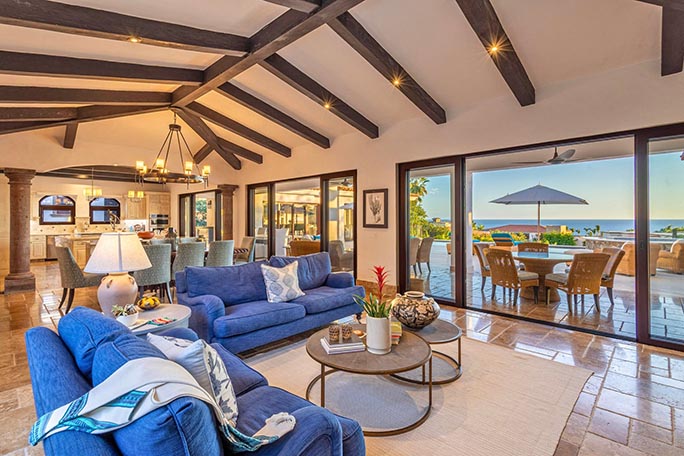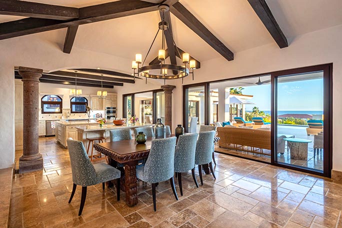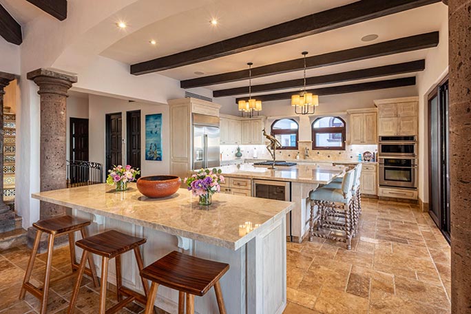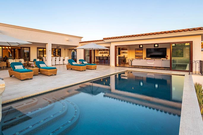 Fully remodeled with entertaining in mind, Casa Reino is a stunning Spanish Colonial-style residence located within the double-gated Fundadores community of Puerto Los Cabos. Designed for hosting family and friends while maintaining privacy, this custom-built home blends timeless architecture with modern luxury and efficiency. Featuring an expansive pool terrace with shaded outdoor living and dining areas and multiple interior courtyards. A brand-new bar, media, and entertainment room and a luxurious master suite with a soaking tub and indoor/outdoor shower. Modern upgrades include all-new plumbing, air conditioning, doors, windows, lighting, and furnishings. Large 2 car garage, new laundry room, BBQ center with wet bar and newly refinished pool.