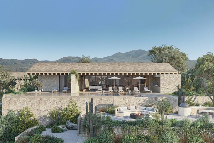 Located on the exclusive cul-de-sac of Palmilla Park, Casa Torote is one of four homes in this sought-after enclave. Scheduled for completion in early 2026, this 10,500 sq. ft. single-level home blends Mexican-inspired contemporary design with customizable pre-construction options. The residence features five en-suite bedrooms with private terraces. The gourmet kitchen connects to indoor and outdoor living spaces, including a veranda with a pool, spa, firepit, and dining areas overlooking golf, mountains, and ocean vistas. Additional highlights include a media room, two-car garage, smart home technology, and solar readiness. Perfectly located within Palmilla, it offers direct access to The Commons, Arroyo Park, El Once golf course, plus eligibility for memberships in Club Ninety-Six.