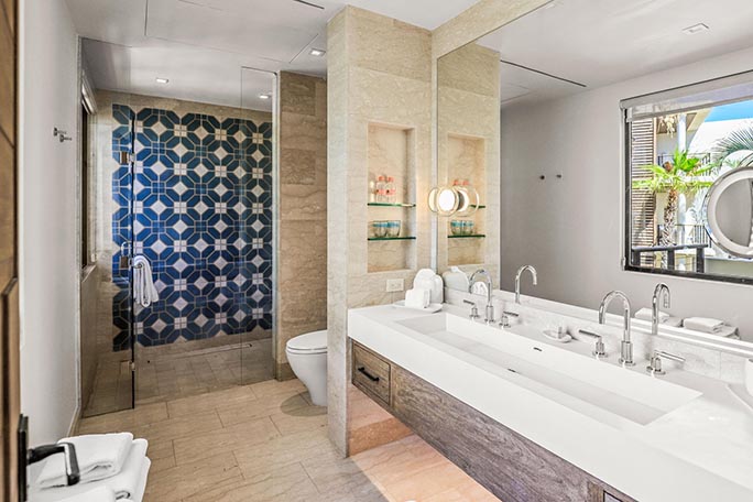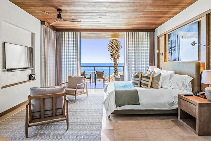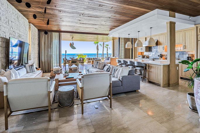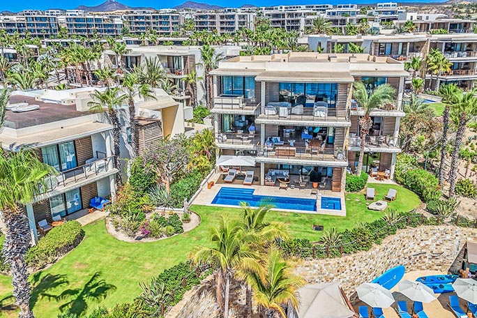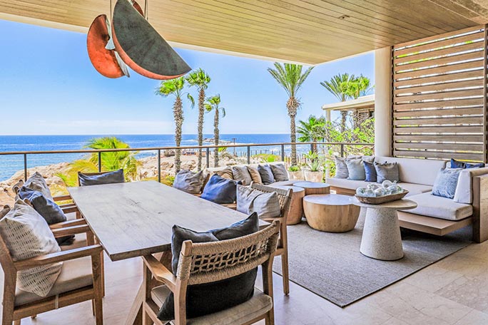OCEANFRONT!!! One of only a few truly oceanfront villas located within the prestigious Auberge Chileno Bay Resort. Spectacular sunrise and moonrise views overlooking the azure waters of the Sea of Cortez, steps away from the best swimming & snorkeling in Los Cabos. Explore the reef by paddle, kayak, or water bike, all provided and maintained by the great team onsite. Beautifully furnished and completely turnkey, this 4 bedroom is set up as a 3 bedroom main villa with a private entry lock-off 2nd master suite which allows flexibility for those interested in renting to maximize income potential. Every detail is cared for by Auberge. Hassle-free home ownership at its finest. Membership to the Discovery Chileno Bay Golf and Beach Club is available for purchase upon approval.