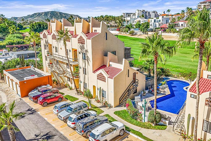 Enjoy Vedanta Golf Course Views from this perfectly appointed and renovated 1BR, 1BA, condo at Club La Costa in the hotel zone of San Jose. End unit next to one of 3 swimming pools. Enjoy a tranquil, private location from the second floor. Furnished with stainless steel appliances, a large shaded patio, A/C, fans, purified water & ice, laundry & storage. Walking distance to the beach, Plaza Pescador, grocery stores, shopping, restaurants and San Jose's historic art district. Close proximity to Puerto Los Cabos Marina, Cabo San Lucas and the airport. Don't miss out on this opportunity to own a condo with everything you need to enjoy all the Southern Baja has to offer. Easy to rent and move-in ready for year round enjoyment in beautiful San Jose del Cabo. MUST SEE PROPERTY!