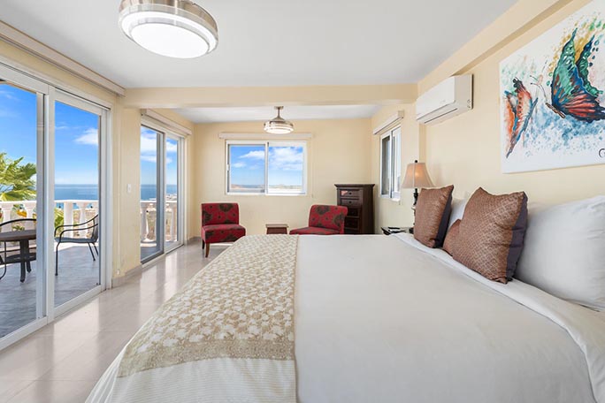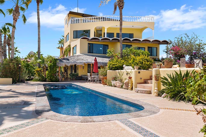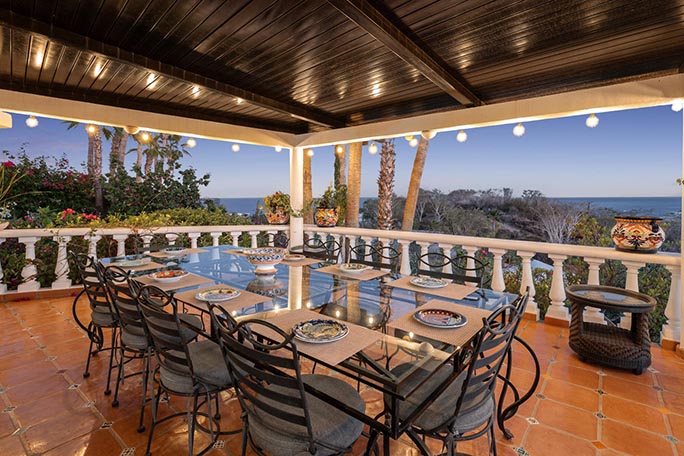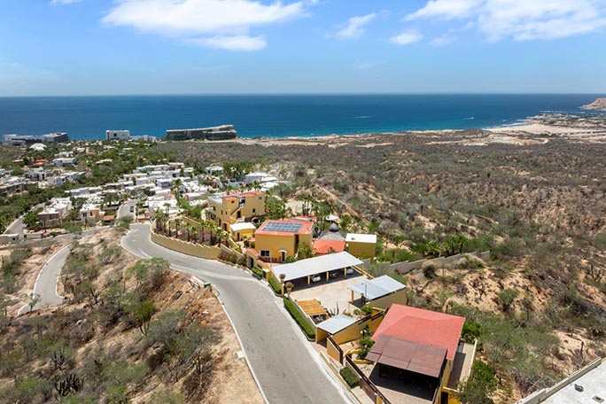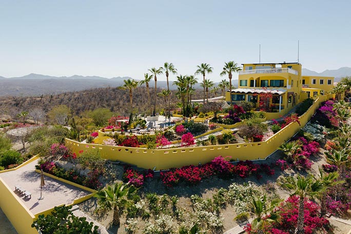 Serene hilltop retreat overlooking Chileno Bay. Nearly 2 acres in the heart of the prestigious Los Cabos corridor between San Jose del Cabo and Cabo San Lucas, this exceptional estate offers unmatched privacy, panoramic views, and timeless tranquility. Perched above the shimmering waters of Chileno Bay, Rukhsana's Retreat is a true Garden of Eden. Enjoy front-row whale watching, spectacular sunrises over the sea, and unforgettable sunsets over the mountains from this peaceful hilltop haven.