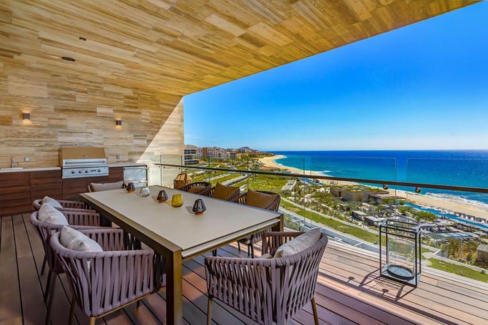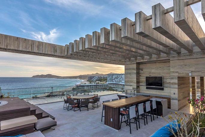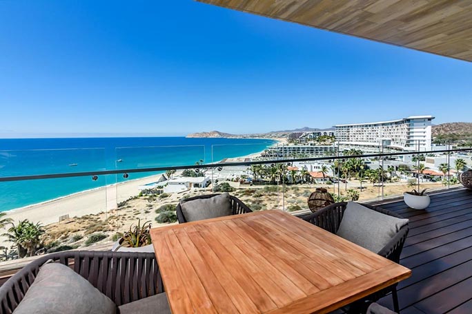 Indulge in an unparalleled living experience at the prestigious Solaz Resort in Los Cabos. This exceptional 3BR, 3.5 BA penthouse offers an exquisite blend of sophistication, comfort, and breathtaking ocean views. The open-concept living space features stunning Sea of Cortez views and a modern, fully-equipped kitchen. The three generously-sized bedrooms feature en-suite bathrooms and private terraces. The master suite includes a spa-like bathroom and walk-in closet. The private rooftop terrace comes with a pool/jacuzzi, covered dining area, outdoor kitchen, BBQ grill, and bar area for hosting friends and family. Solaz 306 is conveniently located near championship golf courses, upscale shopping and vibrant nightlife.