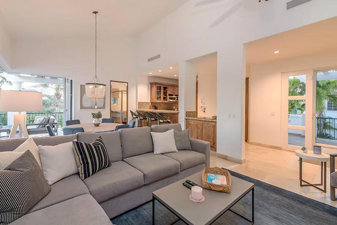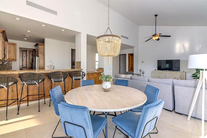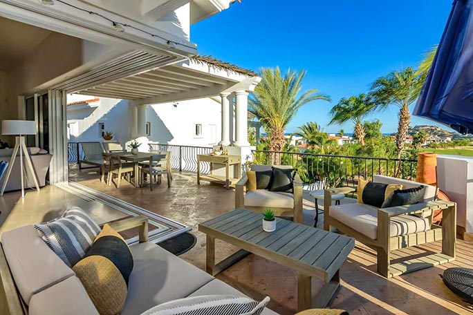 Experience luxury coastal living in this beautiful open-concept top-floor condo offering views of the ocean, golf course, and surrounding mountains.Featuring three generously appointed bedrooms, each with a private ensuite bathroom, plus an elegant guest powder room off the main entry, this home perfectly blends sophistication, comfort, and functionality. Designed with a seamless flow between indoor and outdoor living spaces, the residence offers an inviting atmosphere ideal for both relaxation and entertaining. Sold fully turnkey, it's ready for immediate enjoyment or use as a high-performing vacation rental investment. Residents and guests can indulge in the Palmilla lifestyle, with Palmilla Beach and the Palmilla Shoppes just a short stroll away.