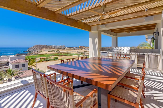 Villa Azul is a stunning 4BR residence in the private Cove Club at Cabo Del Sol, one of Los Cabos' most prestigious communities. Each bedroom is a full master suite, complemented by two half baths, one is in the living area and one on the rooftop terrace. With over 3,600 sq. ft. under A/C and 1,100+ sq. ft. of terraces, the villa offers seamless indoor-outdoor living. The private rooftop features a pool and hot tub overlooking breathtaking ocean views. Fully furnished and turn-key, Villa Azul combines luxury, comfort, and value, one of the most desirable offerings in Cove Club.