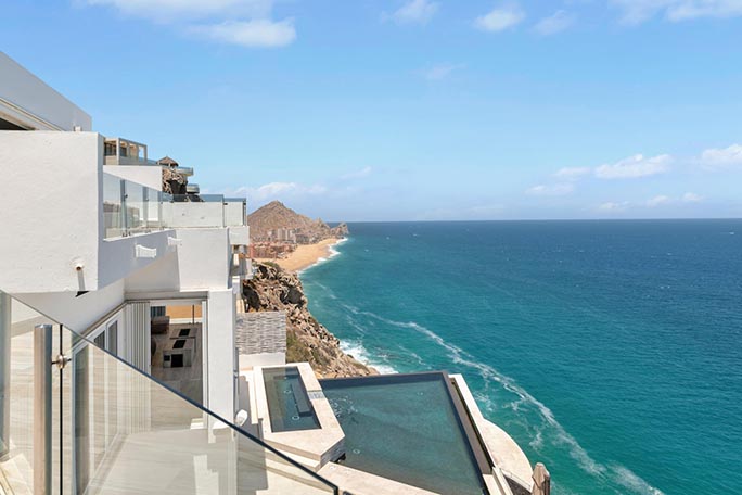 Experience the height of modern coastal living at Villa Lands End, a one-of-a-kind luxury estate perched on a dramatic rock formation in Pedregal with commanding views of the Pacific Ocean. This 7BR, 8BA oceanfront masterpiece blends architectural elegance with indoor-outdoor flow, designed to host everything from intimate moments to large-scale entertaining. Every detail has been crafted with premium finishes and high-end features, including Sub-Zero and Viking appliances, full smart-home automation, integrated A/V systems, 7 fire pits, 2 Jacuzzis, a prep kitchen, and 40 polycrystalline solar panels. Each bedroom offers ocean views, privacy and comfort with spacious en-suites, ideal for large families or luxury retreats.