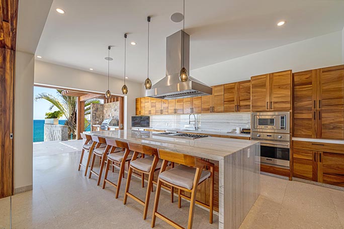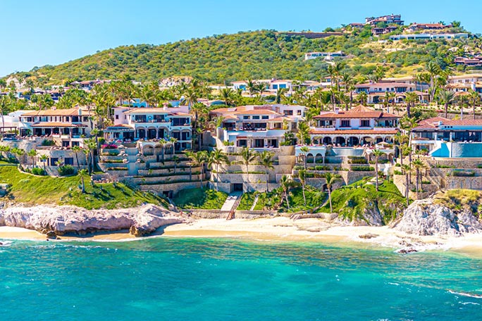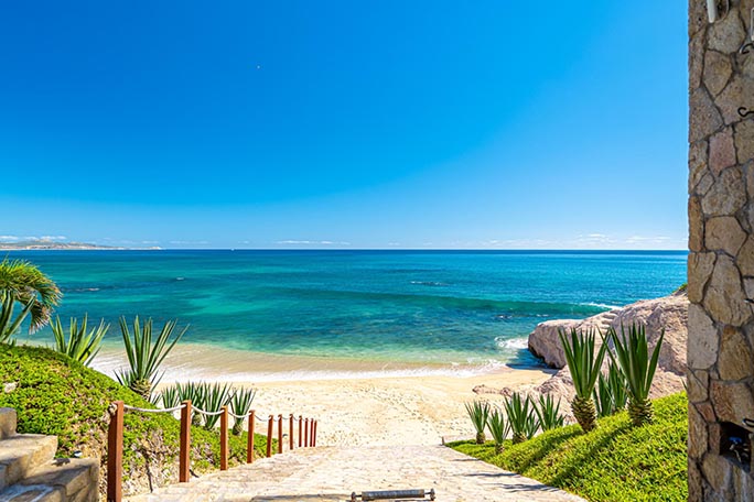 Beautiful contemporary home in the exclusive Caleta enclave of Palmilla offering 6BR, 8.5BA, and sweeping, unobstructed views of the Sea of Cortez. Designed for effortless indoor-outdoor living, the home features two elevators, one providing private access to the beach cove, two gourmet kitchens, expansive ocean-facing terraces, and two infinity pools. Custom wood detailing, fire features and thoughtfully curated designer lighting throughout. Additional highlights include separate guest quarters, a beach-level garage with its own bar and bath, and full smart-home technology. Step from your private beach straight into the water, paddleboard or surf right out front, then be back home in minutes. You're also a golf-cart ride from the One&Only Palmilla, Palmilla Social Club, Palmilla Golf Course, and The Shoppes at Palmilla. Offered partially furnished.